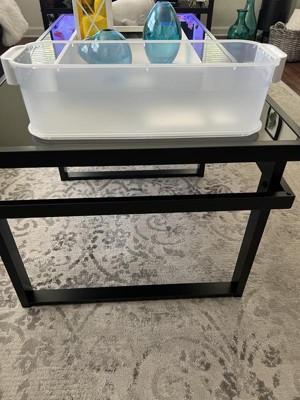 Great size and function. Using to help organize my preteen daughters desk. She likes that she can use it for all of her art supplies and see everything inside so she doesn't have to empty everything out while searching.
