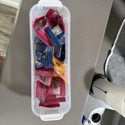 This has been a huge help in organizing my bathroom. It is a slim size so it fits in all my small places like under my sink or in my dresser drawer to hold my socks. The click in place ensures you can snap the lid on with ease and have peace of mind knowing the box will stay closed and protect your items. I love this addition to my storage collection!