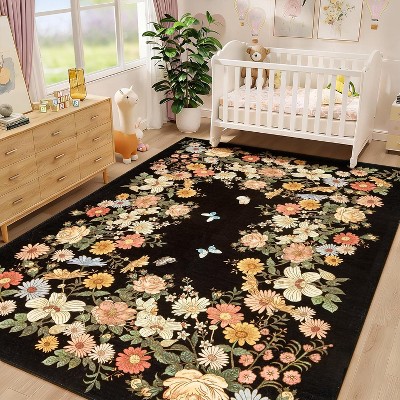 4*6FT Modern Abstract Marble Washable Rug, Soft Luxury Non-Slip Area Rug for Living Room Bedroom Kitchen Entryway Office-Black
