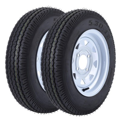 4.80-12 Trailer Tires with 12" Rims ¨C 5 Lug on 4.5" Bolt Pattern, Load Range C (Set of 2)Product Description This is a ready-to-use set of two 4.80-12 trailer tires pre-mounted on 12-inch rims, designed for dependable light to medium-duty hauling. Featuring a robust 6-ply (Load Range C) construction with a substantial load capacity, these tires provide stability and durability for various trailers. The wheels come with a standard 5-lug on 4.5-inch bolt pattern for broad compatibility. Ideal for utility, landscaping, and small cargo trailers, this set offers a convenient all-in-one upgrade or replacement solution.Key Features & Benefits