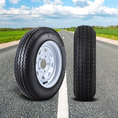 4.80-12 480-12 480X12 Trailer Tire and Wheel Assembly, Heavy-Duty Load Range C 6PR, 5 Lug White Modular Wheel, 12 Inch Tirest, Set of 2