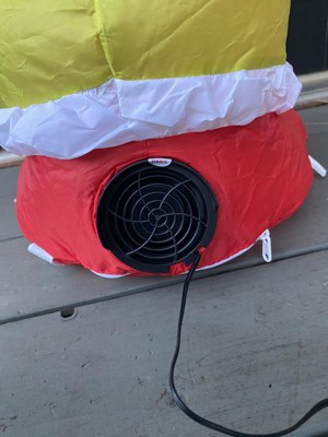 We use multiple inflatables on a timer and have no issues with any of the others that are half the price of this one. Unfortunately, this Grinch inflatable is poorly designed and the base is not sturdy enough to keep it standing, even if you use all of the stakes and strings provided. It will either lean forward or lean backward and you can forget about it if there is the slightest wind. I’ve tried adjusting it multiple ways, but I’ve been unsuccessful. The only way I could see this standing is if there were two string held stakes on the left and right, two in the forward direction and two in the backward direction in addition to the two base stakes. That’s a lot of support for a 4 foot inflatable. For the next consideration of this inflatable, the engineer should consider a wider, flatter base.