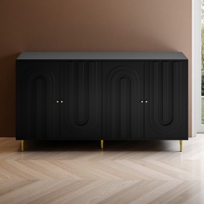 - Vintage Touch: Finished in matte black lacquer, this sideboard exudes a vintage aesthetic, complemented by four modern diamond-shaped door handles that are both functional and stylish.