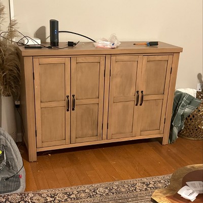 4-Door Storage Sideboard with Adjustable Shelves and Retro Atimon Handles, Buffet Cabinet with Pinewood Legs, Coffee Bar Cabinet, Black - ModernLuxe