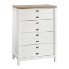 The versatile storage space you need with the beautiful style that you want – what could be better? Add convenient storage options to your bedroom while adding charming style and design with this 4-drawer chest from the Cottage Road collection. This stunning dresser features four large drawers that open and close on smooth metal runners, creating easy access storage for a variety of different items like stacks of slacks and your favorite blouses to your collection of t-shirts and comfy sweatpants. You can find a place for all your things! Its spacious top surface provides you with additional room to store additional bedroom essentials and display home décor items like an accent lamp, your alarm clock, perfume bottles and photos of your family too. Each drawer is detailed with a panel design and attractive hardware to give it its cottage-inspired look. Finished in Soft White with Lintel Oak accent, this chest of drawers is everything you need.