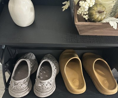 It is very heavy to bring inside. It’s a little bit hard to put together since you’ll need two people. But it came out beautiful, and it was very happy with the size and the quality of it. I’d also like that the inside has adjustable shelves so if your shoes are bulky or it can accommodate for them, but if you’re using it for only larger men’s shoes, they might not fit.