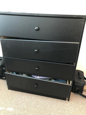 Upon first glance, item is a simple black dresser. Material is a bit cheaply made, but that was to be expected at the price point of the dresser so not knock there. The instructions were utterly horribly written and incredibly difficult to follow. Pictures with unclear instructions and minimal directions. Took 3-4 hours to assemble and process is painstakingly difficult. Would rather pay 2-3x more for a dresser assembled as opposed to ever do another one of these...