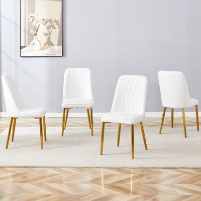 4 Modern PU Leather Curved Backrest Dining Chairs with Thick Padded Seat, Ergonomic Design, and Anti-Slip Pads for Kitchen