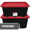 - 4 Pack Large Storage Bin, 27 Gallon Plastic Storage Container with Snap-On Lid, Black and Red