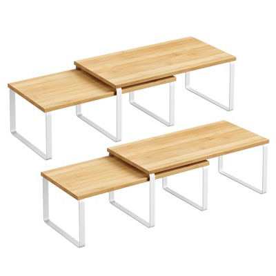 4-Pack Stackable Kitchen Shelf Organizer - Expandable Spice Rack for Cabinet/Counter, Metal & Wood