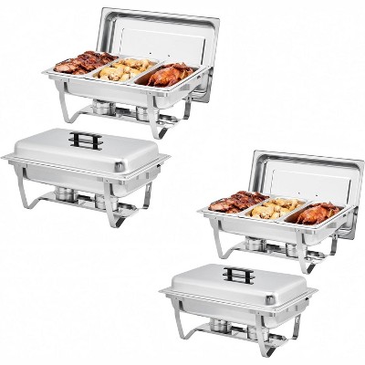 4-Pack Stainless Steel Buffet Server Set, 3-Well Rectangular Chafing Dish Multi-Compartment Food Warmer for Catering, Wedding Events, Home Parties