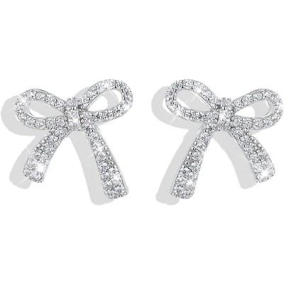 4-Pair Silver Plated Huggie Hoop Earrings - Bow, CZ Heart & Star Dangles, Hypoallergenic for Sensitive Ears Ages 3+ Star butterfly set One Size