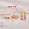 Gold Dangle Earring Set: 4 pairs pink earrings perfect for completing any look with effortless elegance. Whether it's the trendy Paved Huggie Hoop, classic Small Dangle Hoop, the intricate Diamond Stud, or the delicate Ear Climber, each piece adds a touch of sparkle, making you shine on every occasion
