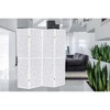 This beautiful room divider is sure to enhance any room or space. It can be used for separating a large living space, office, or dorm. You can also use it or for adding stylish decor wherever you desire. It features a contemporary chip pattern, white high density rice paper on the back, dual action hinges, so it can easily be expanded open or closed to fit any space, and easily folded for storage.