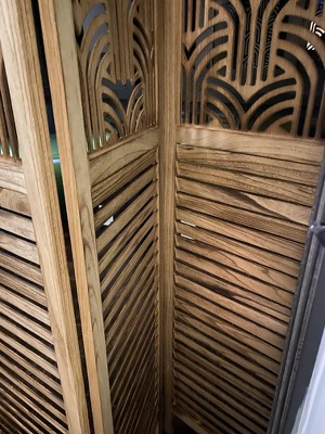 Product DescriptionThis 4-panel room divider features an elegant cutout design that lets natural light flow while providing privacy. Measuring 64x67 inches, it’s foldable for easy storage and requires no assembly. Lightweight and equipped with smooth metal hinges, it’s easy to move and adjust, making it perfect for dividing spaces or adding decorative flair in living rooms, bedrooms, offices, and more.Product InformationStyle: FarmhouseColor: NaturalMaterial: WoodItem Weight: 15.97 PoundsProduct Dimensions: 64"W x 67"HNumber Of Panels: 4Recommended Uses For Product: PartitionSpecial Feature: FoldableMounting Type: FreestandingPattern: GeometricIndoor/Outdoor Usage: IndoorProduct Care Instructions: Wipe with Dry ClothFinish Type: Natural