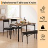 Enjoy cozy family meals with this 4-person dining table set featuring plush upholstered chairs and a matching bench. The durable metal frame and premium MDF tabletop ensure long-lasting stability for daily use. Each chair and bench provide thick, comfortable padding for relaxed gatherings, while the space-saving design keeps your dining area neat by tucking neatly under the table. Easy to clean and quick to assemble, this set brings comfort and practicality to any small home, studio, or apartment.