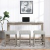 - Exquisite appearance: Industrial dining table: This bar table and chair features a high-quality imitation wood grain surface, making it an excellent addition to your kitchen, gaming room, or living room. Space saving and perfect fit: Three 18 "long x 11" wide x 24.25 "high bar stools can fit perfectly under the table when not in use, maximizing space while maintaining aesthetics. Foot mats not only increase stability but also prevent floor scratches.
