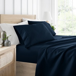 Product Name: 4 Piece Bed Sheet Set Solid Double Brushed Microfiber, Ultra Soft - Becky Cameron, Navy, Queen