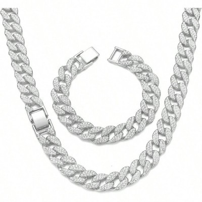 4 Piece Clutch Purses for Women Evening Rhinestone Jewelry Set with Necklace, Earrings, Bracelets for Wedding.Metal typeSilver