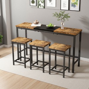 4-Piece Dining Set with Color-Block Table and 3 Space-Saving Hanging Stools