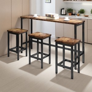 - 4-PIECE COUNTER HEIGHT TABLE SET: Made of high-quality steel frame and MDF panels, including 1 counter height long table and 3 stools. Both table and stools have foot rests—enhancing sturdiness and humanization, letting you rest your feet while eating or drinking for extra comfort.