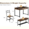 - This dining table set includes 1 square dining table, 2 chairs, and 1 bench, perfectly sized for 4 people to enjoy meals together.
