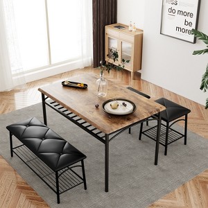 4-Piece Dining Table Set, Upholstered Bench & 2 Stools w/Storage, Kitchen Table Set