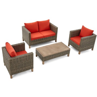 4 Piece Patio Conversation Sets with Cushions and Coffee Table