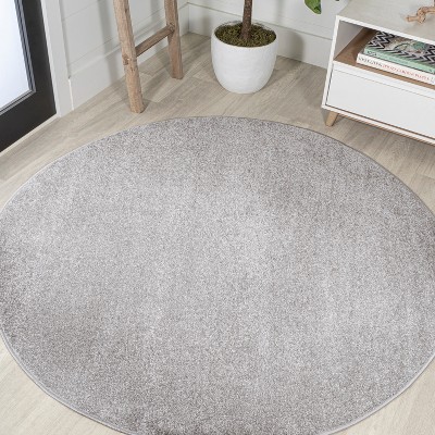 JONATHAN Y Haze Solid Low-Pile Gray 4 ft. Round Area Rug, Non-Shedding, Easy-Clean, Durable Synthetic Fibers