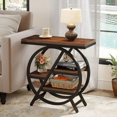 4-Tier Brown End Table Small Side Table Snack Table with Storage Shelves