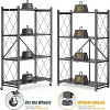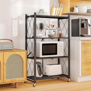 Maximize your storage instantly with this heavy-duty foldable 4-tier shelf. Crafted from rust-resistant metal, it offers exceptional strength—holding up to 600 lbs without wheels or 300 lbs with wheels. The no-assembly design sets up in just 5 seconds, while the fold-flat frame saves space when not in use. 360° swivel casters with two locking brakes ensure smooth mobility and secure placement. Perfect for garages, kitchens, offices, and more.
