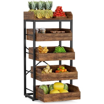 4-Tier Industrial Bakers Rack - Built-in Microwave Stand & Coffee Bar, Free Standing Storage Shelf for Kitchen, Living Room & Garage