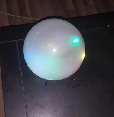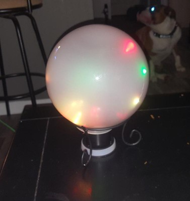 [This review was collected as part of a promotion.] I love the way this globe looks with the lights on. I have it sitting in my garden. It has 3 different colors you can pick from. I really like the blue lights. I think they are beautiful and relaxing. The only issue I have with this globe is the bottom doesn't stay in my globe. The bottom piece of the globe is where the lights and batteries are. I had to glue it to the globe so it wouldn't be sitting on the ground. That's why I rated it 4 stars. I really like this globe and I plan on purchasing more.