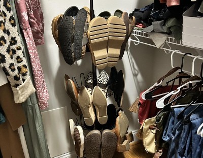 4-Tier Revolving Shoe Tree, Heavy-Duty Steel with Stabilized Base, Holds 24 Pairs of Shoes, Antique Bronze