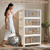 - 【Unique Design】The collapsible storage bins features durable wheels at the bottom, allowing you to easily move it to your desired location. Whether you are shifting between rooms or during cleaning, it provides convenience. Each storage box is designed with transparency, enabling quick identification and retrieval of items. You can effortlessly locate the items you need without having to open each box, enhancing convenience and efficiency of use.