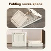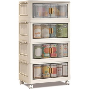 - 【Two Opening Ways & Clear Magnetic Door】Our plastic collapsible stackable storage box can be opened in two ways: You can open the top cover or the magnetic door from the front. Both ways can easily access larger items such as clothes and blankets. The front cover of each storage bin is transparent for a beautiful display and easy to see what you want. (One Lid, One Set)