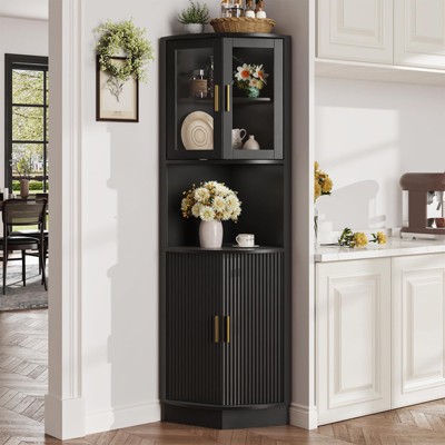 4-Tier Tempered Glass Display Cabinet with Lock & Wheels, Freestanding Storage Cabinet with 6 Acrylic Shelves, Black - ModernLuxe