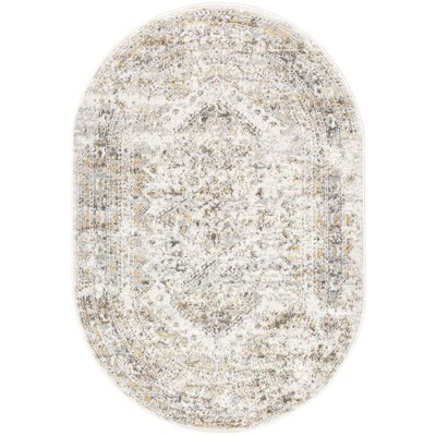 4'x6' Machine Washable Runner Rug, Non-Slip Low Pile Carpet for Hallway, Bedroom, Living Room, Kitchen, Dining Room, Gold Blue