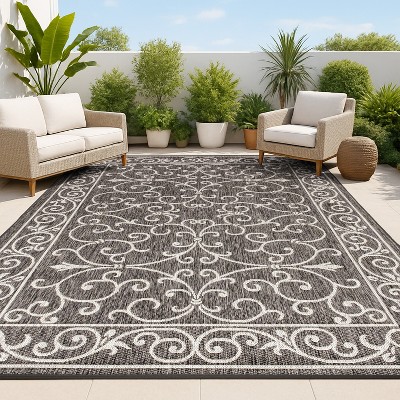 JONATHAN Y Madrid Vintage Filigree Textured Weave Black/Khaki 4 ft. x 6 ft. Indoor/Outdoor Area Rug, Non-Shedding, Easy-Clean