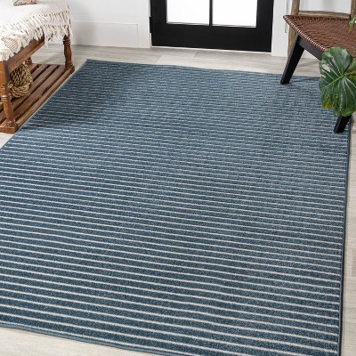 Whether you live in a tropical beach retreat or just love jungalow style, the allover palm frond pattern of this rug brings the jungle home. Scattered palm tree branches create graphic contrast in rich navy and cream tones. The busy pattern is perfect for your tropical patio, entry, kitchen, hallway, living room or bedroom. The pet-friendly and kid-proof flatweave design makes it easy to clean, and perfect for the beach house.