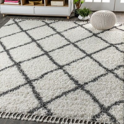 JONATHAN Y Mercer Shag Plush Tassel Moroccan Geometric Trellis Rug, Non-Shedding, Easy-Clean, Durable Synthetic Fibers
