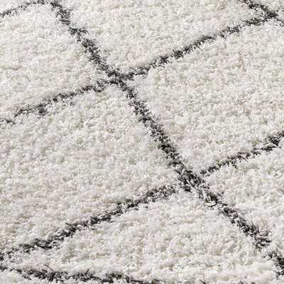 A classic Moroccan trellis design is simultaneously simple and stunning in this plush 2" pile rug. Power loomed, it has durability that will withstand light traffic and an occasional cleaning while retaining style inspired straight from the souk. Made from polypropylene, this synthetic fiber is not only super soft, but solution dyed for lasting color.