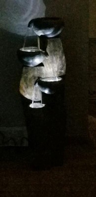[This review was collected as part of a promotion.] I got this for my Mother's back yard and she loves it, The fountain gives her yard a very enchanting look specially at night, it was easy to install and can be moved around. the only thing I would change it's that it needs electric power. other than that it a great yard decoration.