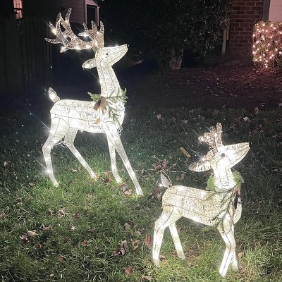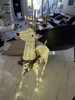 I saw the buck assembled in the store and liked the way it looked. Bought the buck and the fawn on sale - I wouldn’t pay full price for them. They were tough for my husband and teenage son to assemble…some choice words were involved, but they looked terrific once assembled. We use warm white lights on our house, but our figures on the lawn (snowmen, penguins) are cool white. So, the color temperature of these deer fit that scheme. Nice, subtle twinkle lights…they looked great. Two weeks later, someone in a minivan stole them from our front yard one evening!!