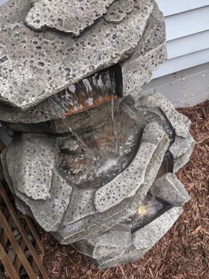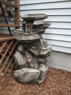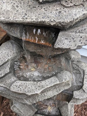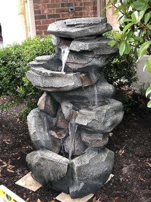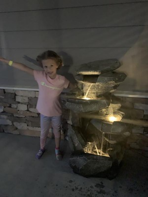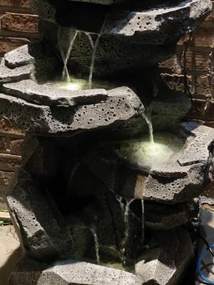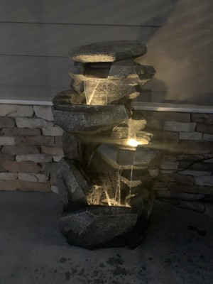 [This review was collected as part of a promotion.] This tiered rock fountain is stunning and top notch. It was an easy set up and the water started flowing very fast. The lights at night are an absolute stunner. It’s been set up for a few days now and I have received so many compliments from my neighbors as they walk by my front garden.
