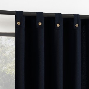 A washed cotton blend fabric embellished with button closure tabs, the Cotton Blend Button Tab Top Curtain from Archaeo brings next-level design detail to your windows. The natural worn texture semi-sheer fabric gently filters light while enhancing privacy. Dress it up with another Archaeo curtain on a double rod, or keep it casual as a standalone curtain. Tab top design allows for simple slide-through installation on curtain rods up to 1 ½” in diameter. Sold as individual panels. Measure carefully before selecting your desired size and quantity. Sold as individual panels measuring 40" width by 84" length in color navy blue. Measure carefully before selecting your desired size and quantity. Rod not included. Machine wash cold on gentle cycle. Use non-chlorine bleach when needed. Line dry, using a cool iron as needed.