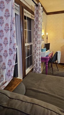 [This review was collected as part of a promotion.] These Avie Global Medallion Grommet Curtain Panels No. 918 are nice. They hang beautifully. They’re a nice pattern fabric, a little transparent than I thought.