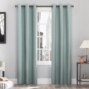 Sun Zero Cyrus Curtain Panels provide the ultimate in light blocking technology to keep out even the harshest of light while adding energy efficiency to any room of your home. Sun Zero Total Blackout technology is laboratory tested to block out 100% of light, reduce outside noise by up to 35%, and decrease energy lost through your windows by up to 35%. Comfort is optimized with thermal insulation that helps keep summer heat and winter chill out of your home. Equipped with built-in metal grommets for easy hanging on standard curtain rods up to 1.5" in diameter. Hang in your entertainment room to eliminate screen glare and reduce distracting outside noise, or in your bedroom for enhanced privacy and a sounder, more uninterrupted sleep. Sold as individual panels. Measure carefully before selecting your desired size and quantity. Rod not included. Machine wash cold on gentle cycle. Use non-chlorine bleach when needed. Tumble dry on low heat, using a cool iron as needed.
