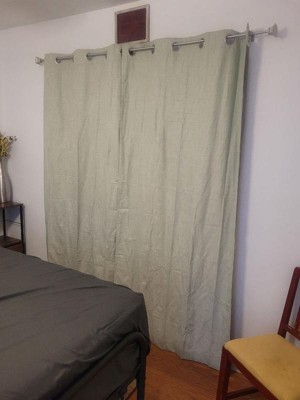 Sun Zero Arlander Curtain Panels offer energy efficiency and elevated design with a crosshatch texture complemented with a modern metal grommet top for easy hanging on a standard curtain rod up to 1.5" in diameter. Sun Zero Thermal Blackout Curtains are laboratory tested to block out most light, offer outside noise reduction by up to 25%, and decrease energy lost through your windows by up to 40%. Comfort is optimized with thermal properties that help keep summer heat and winter chill out of your home. Hang in your living room for enhanced privacy, or in your bedroom for a sounder, more uninterrupted sleep. Mount rods at least 2" above the window for maximum light blocking. Sold as individual panels measuring 40" width by 84" length in color sage green. Measure carefully before selecting your desired size and quantity. Rod not included. Machine wash cold on gentle cycle. Use non-chlorine bleach when needed. Tumble dry on low heat, using a cool iron as needed.