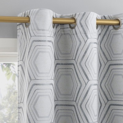 Sun Zero Brevick Geometric Faux Linen 100% Blackout Grommet Curtain Panel